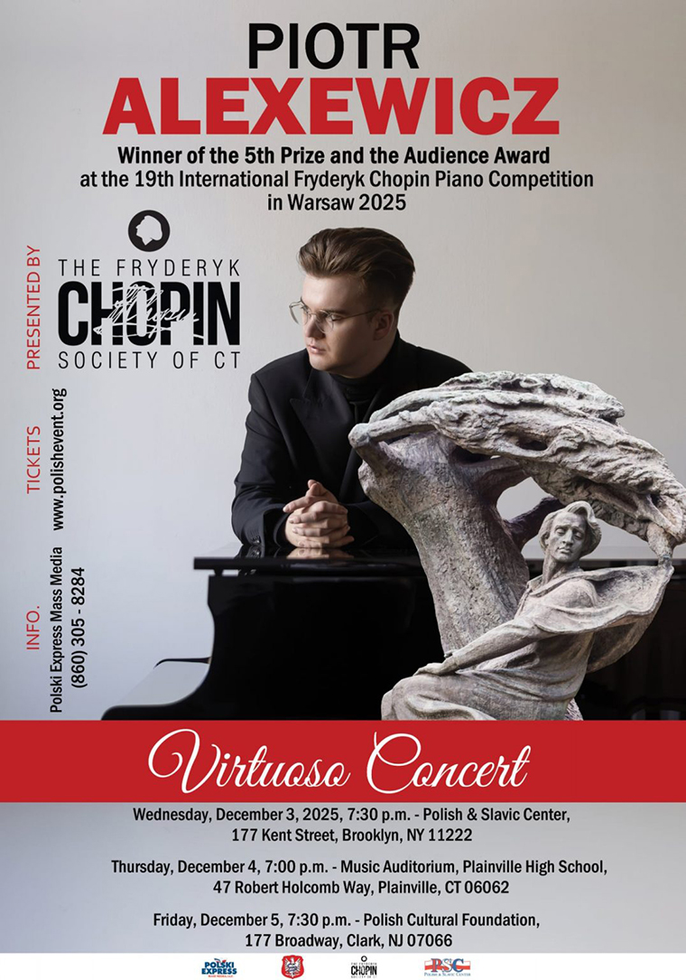 3 grudnia 2025 zapraszamy do Polish & Slavic Center, przy 177 Kent Street, na koncert fortepianowy z udziałem Piotra Alexewicza.